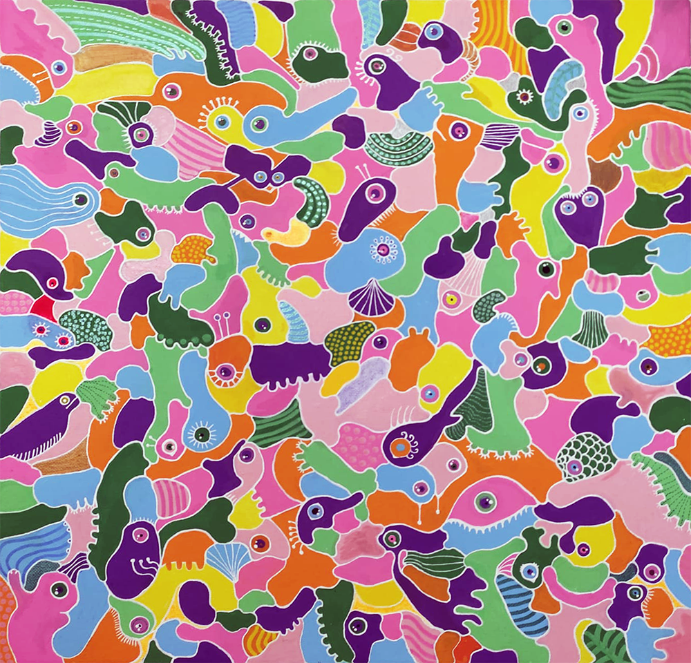 L’ho appeso accanto alla mia scrivania, il posto dove ogni giorno lavoro o cose del genere. Ho sempre pensato fosse un ritorno al gioco, questo piccolo quadro che potrebbe essere un pattern di tessuti ikea. Non so perché, però mi piace. Sono due o tre i quadri dai quali non mi separerei volentieri, e questo è uno di quelli. Ricordo di averci messo un sacco di tempo a realizzarlo perché ho lavorato lentamente, gustandomi la cura dei dettagli, giocandoci su ma anche pensando spesso (forse troppo spesso) che stavo perdendo tempo. Perché lo ammetto, dipingere è un lusso (mica tutti hanno la possibilità di dedicare tempo per sé e nient’altro) che però comporta un po’ di controindicazioni. Occorre avere la forza di sopportare il senso di colpa del non essere produttiva, di non essere un elemento inserito nel sistema. Si prova un’irrazionale paura di essere giudicata. E poi si fa fatica a sopportare la frustrazione del quadro che non va, che non funziona come doveva, che è -semplicemente- brutto. Hai lavorato tanto a un’idea, ti sei impegnata e poi ti arrendi: no, questo percorso è un vicolo cieco, non doveva andare così. Quante volte mi è successo. E infine, ed è la cosa più pesante, si deve accettare l’idea di non essere un’artista ma che va bene così, anche se non hai inventato niente. Perché spessissimo credi di aver inventato, sperimentato, percorso un nuovo filone ma no, in arte niente è nuovo anche se si, vale la pena provarci comunque. Per me dipingere è un atto di coraggio. Perfino se quello che hai fatto resta su uno scaffale e magari, un giorno, verrà buttato in discarica perché a nessuno importa, vale la pena farlo. Perché nonostante tutto, dipingere è bello proprio come giocare.